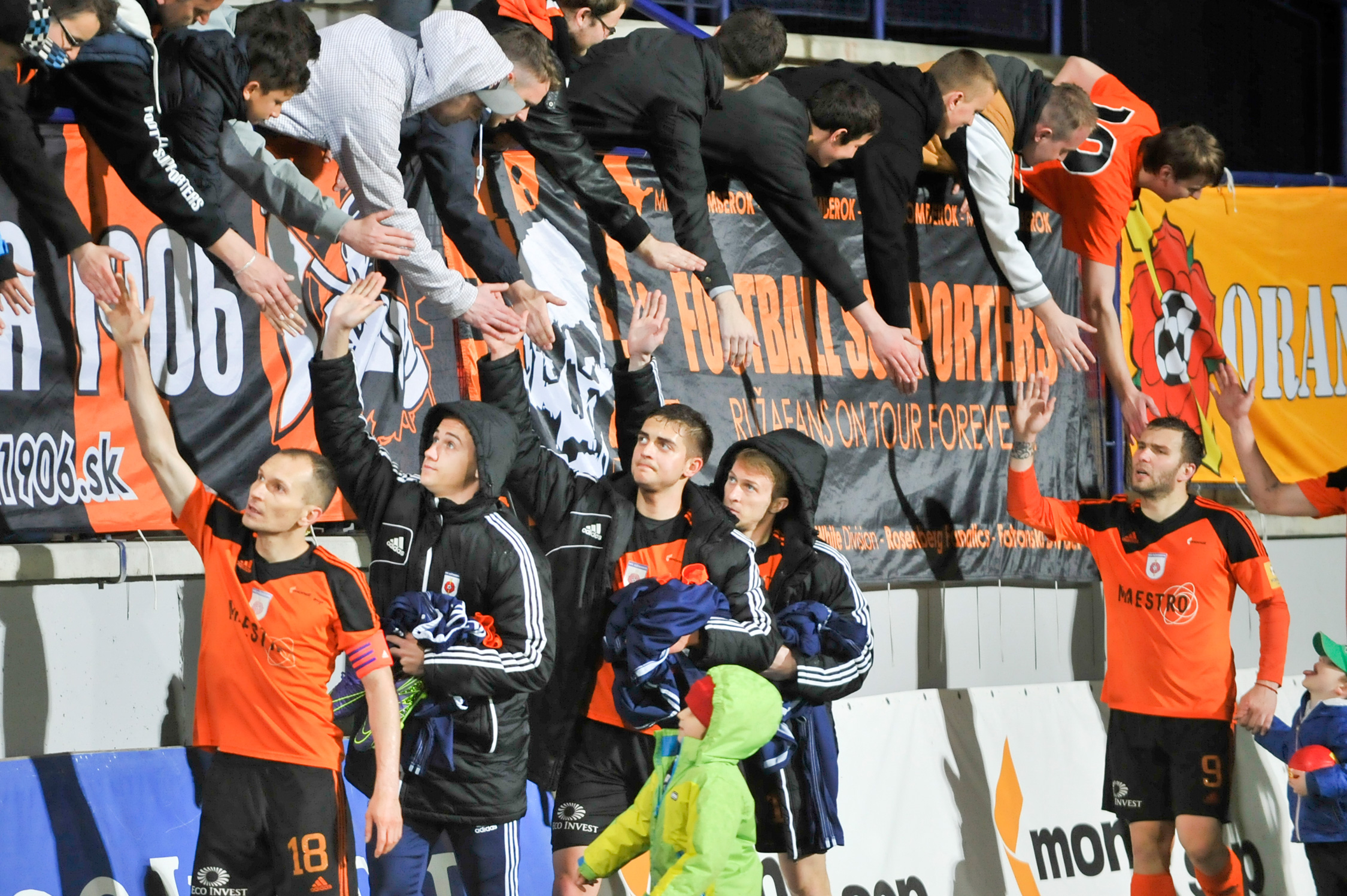 Ďakovačka po zápase - Martin Boszorád, Lukáš Ondrek, Ján Maslo, Darko Tofiloski, Tomáš Gerát, Ľuboš Hajdúch, Peter Gal Andrezly a Adam Kučera