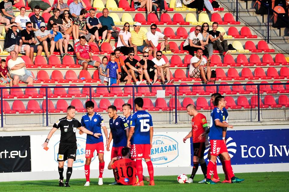 Vylúčenie Olivera Podhorina po faule na Nermina Haskića.