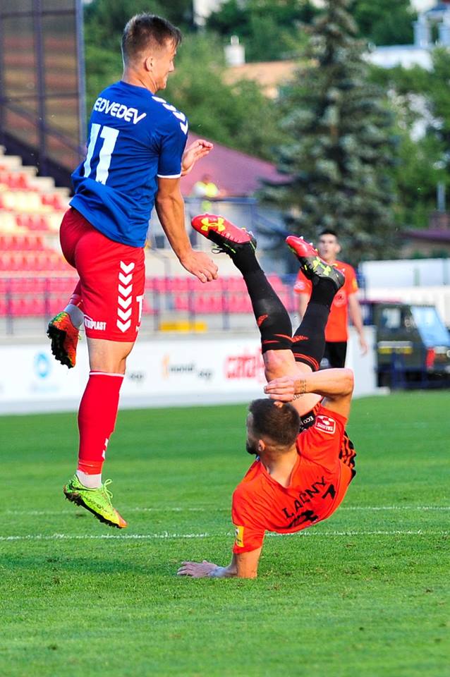 Jurij Medvedev a Miloš Lačný predvádzajúci pekné nožničky.