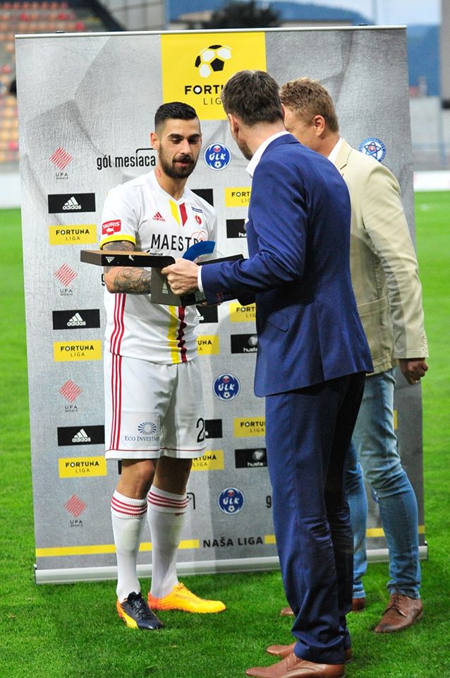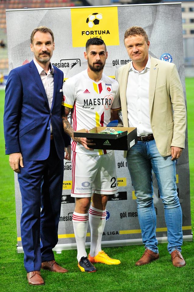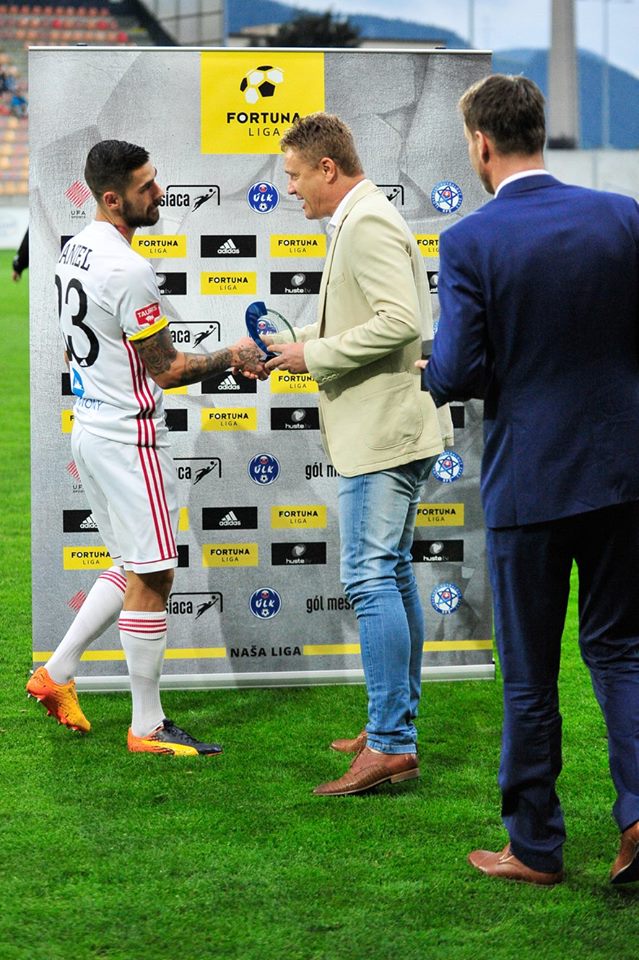 Autor Gólu mesiaca máj Erik Daniel, prezident ÚLK Ivan Kozák a generálny riaditeľ MFK Ružomberok Ľubomír Golis.