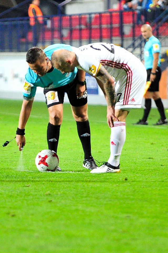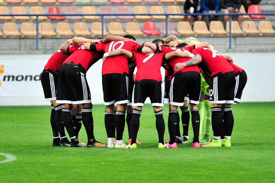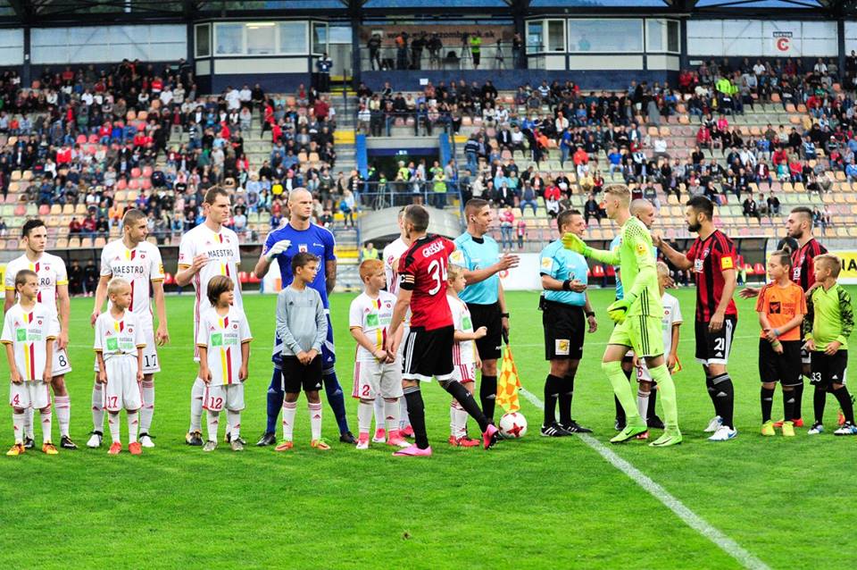 Rozhodcovská trojica a kapitáni obidvoch mužstiev Dominik Kružliak a Lukáš Greššák.