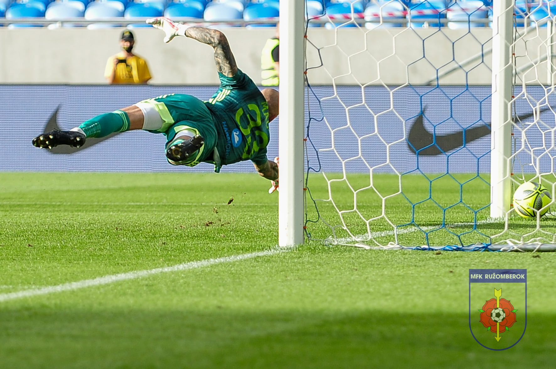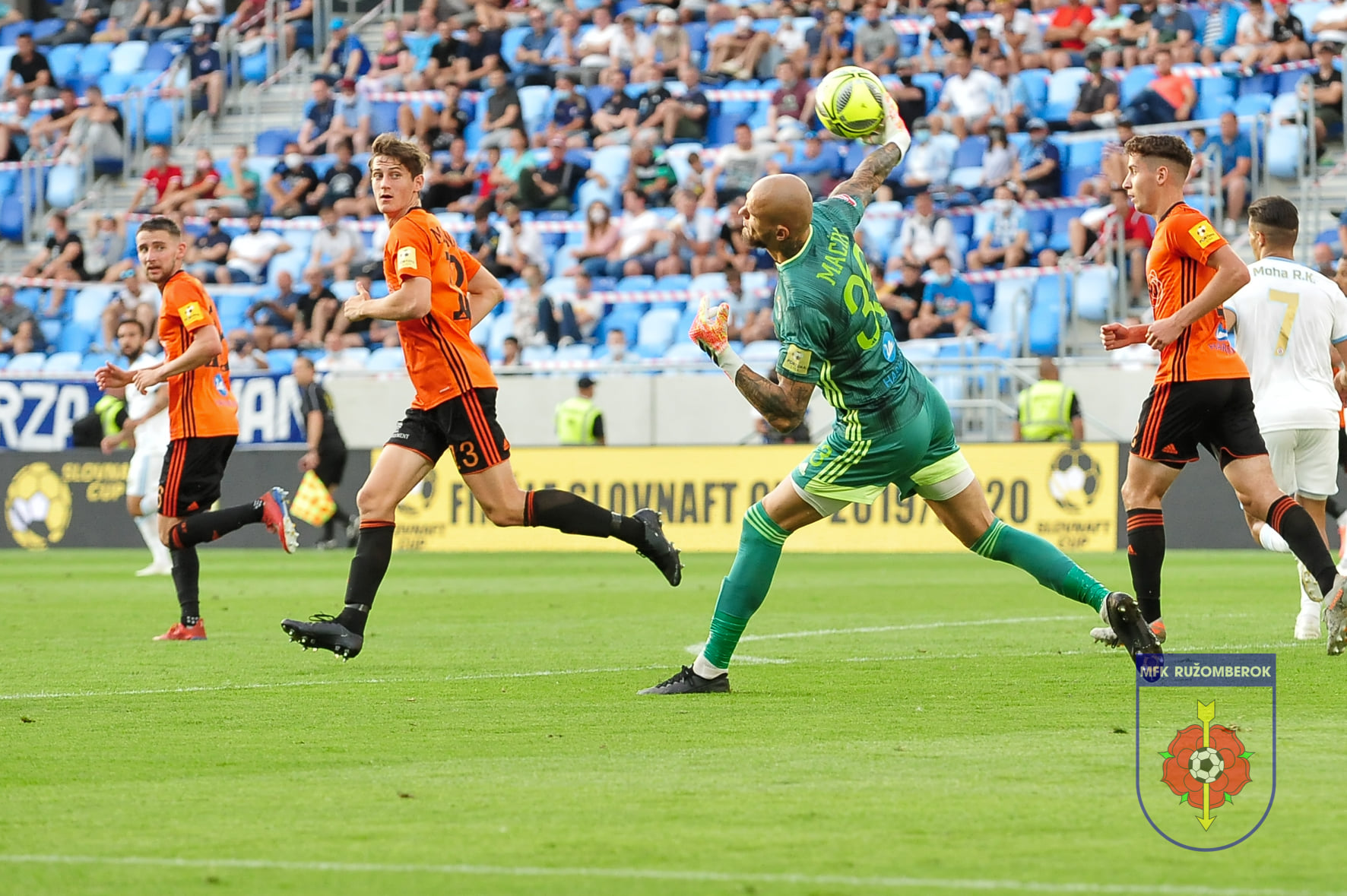 Matúš Macík vystihol smer pokutového kopu, ale lopta končí v bráne.
