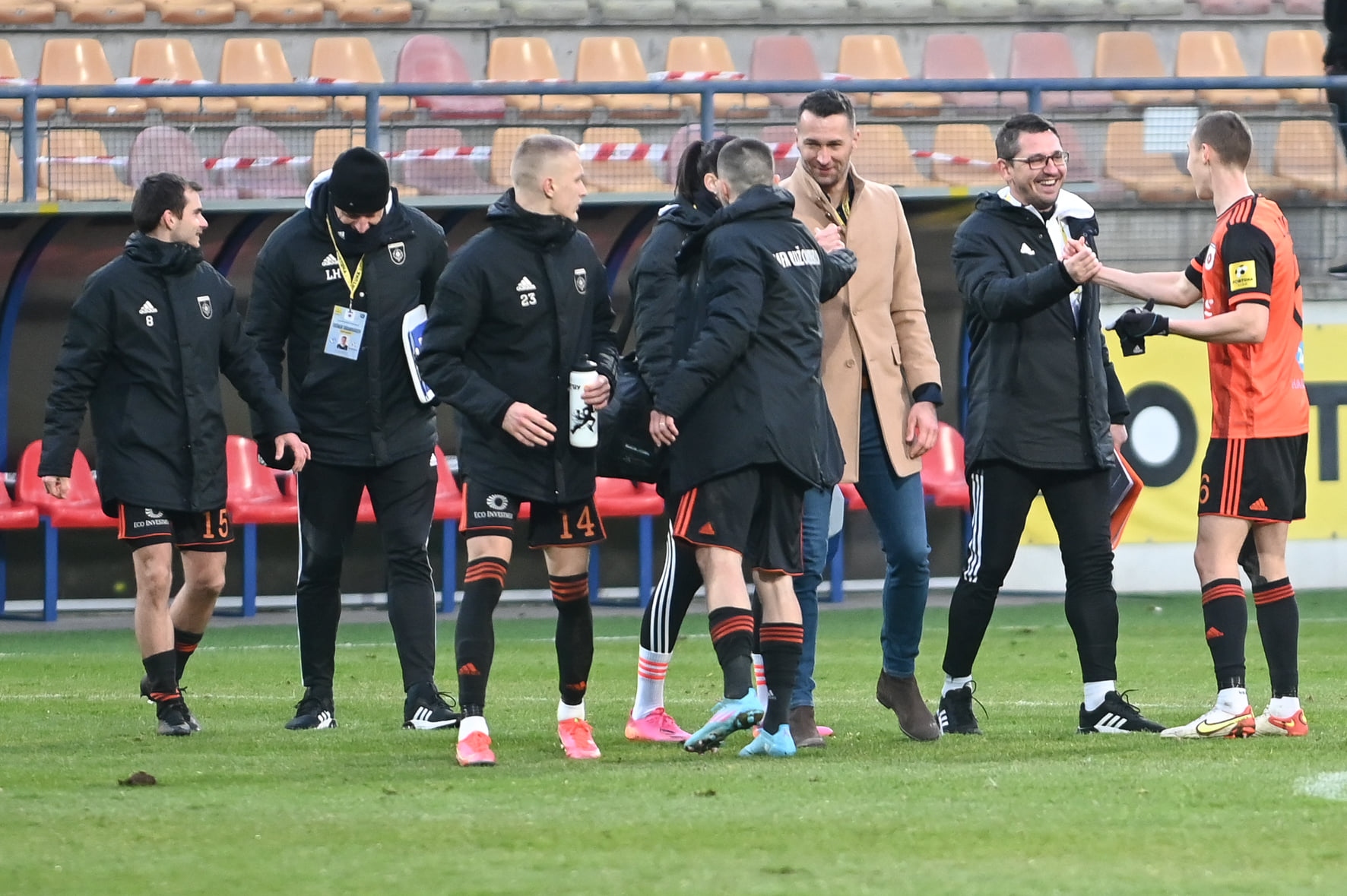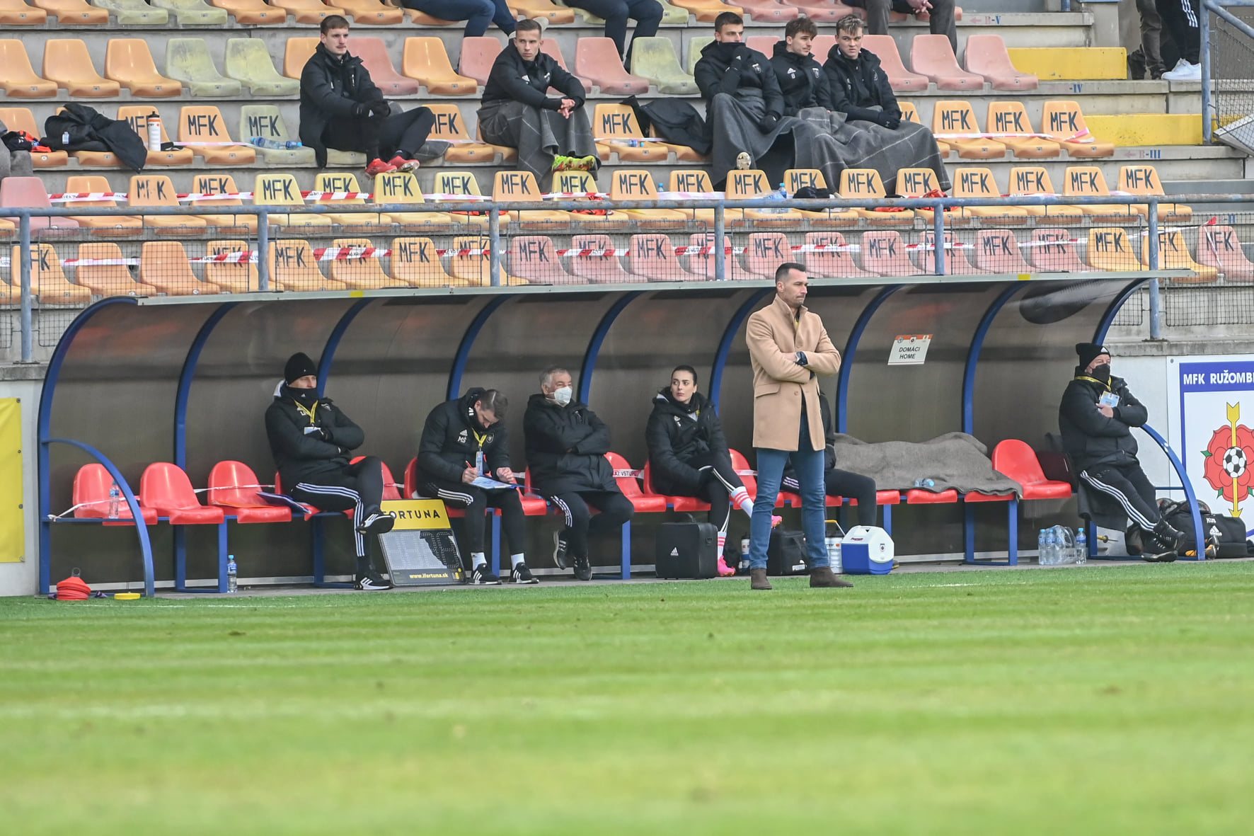 Radosť realizačného tímu po góle.