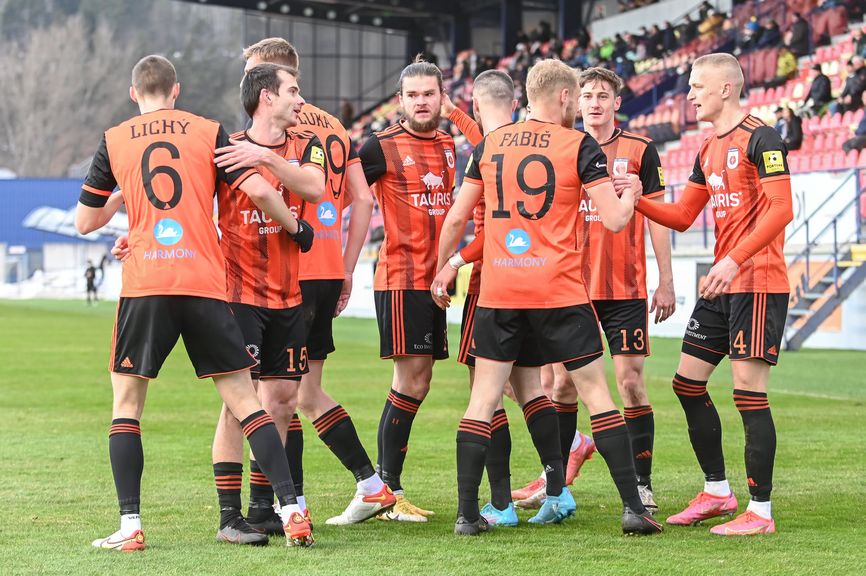 Radosť po góle - Lukáš Fabiš, Tomáš Bobček, Jakub Luka, Oliver Luterán, Matej Kochan, Matej Madleňák, Kristóf Domonkos a Martin Regáli.