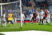 V 4. minúte Pauschek našiel centrom z pravej strany Vojtka, ktorého hlavičku chytil Frühwald. Po deviatich minútach si domáci gólman pripísal ďalší úspešný zákrok, keď zneškodnil Kuckovu strelu. V 26. minúte Chrien vystrelil zblízka, no jeho zakončenie vyrazil Borjan. O štyri minúty Kankava minul vzdialenejšiu žrď. V 37. minúte si Luterán nabehol na Seleckého center, lenže z prvej vystrelil nad brvno. Po piatich minútach Kuckov pokus z väčšej vzdialenosti chytil Frühwald. V nadstavenom čase Pauschek poslal presnú prihrávku na vzdialenejšiu žrď, kde loptu dokopol do siete Marcelli – 0:1.