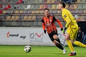 Prvá veľká šanca hostí prišla v 6. minúte, kedy Oforiho strelu zastavila žrď. O desať minút to Mikovič skúsil spoza veľkého vápna, lenže minul bližšiu tyč. V 17. minúte Ťapaj vyrazil nebezpečnú strelu Oforiho. Po troch minútach Chrienove zakončenie zblokoval obranca. V 25. minúte Chrien našiel centrom Hladíka, ktorý tiesnený hlavičkoval v páde tesne vedľa. O dve minúty Azango z mierneho uhla minul bližší horný roh. V 32. minúte udreli hostia, keď si Azango nabehol na Holíkov center a otvoril skóre – 0:1. O deväť minút Oforiho strela spoza veľkého vápna zapadla tesne vedľa domácej brány. Na konci polčasu si Huf nabehol na Lavrinčíkov center, no jeho hlavičku zneškodnil Frelih.