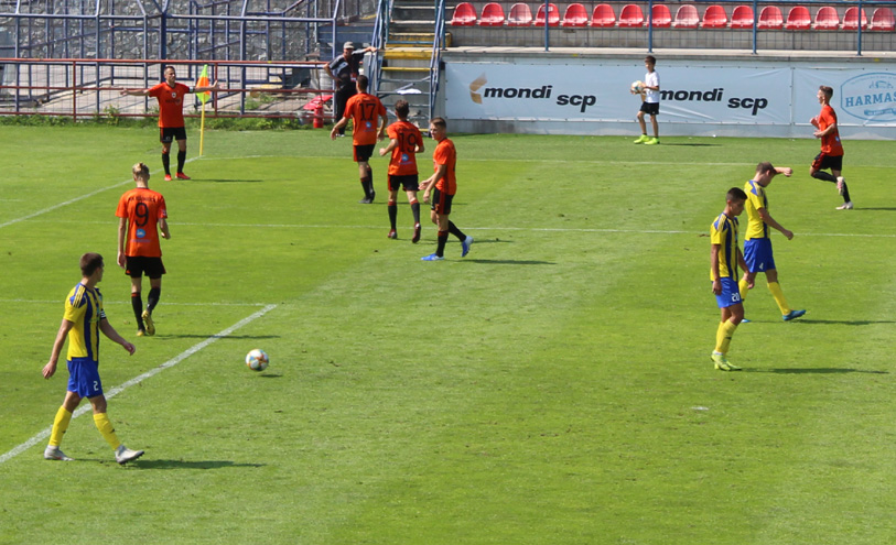 V úvodnom dejstve boli smerom dopredu nebezpečnejší domáci hráči. V 15. minúte obranca zblokoval Múdreho strelu spoza šestnástky tesne vedľa brány. Po dvoch minútach Gmitter vyrazil Kmeťovu strelu. Brankár hostí mal plné ruky práce aj v 26. minúte, kedy vyrazil Dopaterove zakončenie na roh a o dve minúty opäť úspešne zasahoval pred Dopaterom, kedy vyrazil jeho strelu zblízka. V 33. minúte Mário Almaský prihral do pokutového územia Dopaterovi, ten ešte našiel v lepšej pozícii Tomáša Bobčeka, ktorého strelu v poslednej chvíli zblokoval obranca.