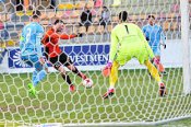 Ruža mala veľkú šancu na otvorenie skóre v 13. minúte, lenže Gal Andrezly po Danielovej prihrávke namieril z vnútra veľkého vápna tesne nad brvno. Po piatich minútach sa o slovo prihlásili hostia, kedy Rundić spoza šestnástky tesne minul. V 21. minúte zakončoval Haskić, ale Božikov zblokoval jeho strelu. O osem minút neskôr Haskić obral Božikova o loptu, no pred Greifom volil miesto strely ešte prihrávku na spoluhráča a tá mu vôbec nevyšla podľa jeho predstáv. V 38. minúte napriahol spoza pokutového územia Mareš a Macík bol na mieste. O štyri minúty mal opäť prácu domáci gólman, keď po rohovom kope nepustil do siete Božikovovu hlavičku.