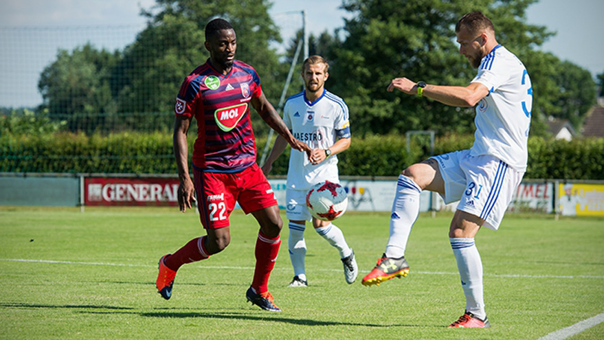 Tím, ktorý sa po zajtrajšom žrebe môže stať súperom Liptákov v prvom predkole Európskej ligy sa ujal vedenia v 17. minúte vďaka Šćepovićovi – 1:0. Ruža sa následne snažila o vyrovnanie, lenže po priamom kope Ďubeka sa futbalistom spod Čebraťa nepodarilo umiestniť nebezpečný center do siete a po chvíli to skúsil Kupec z väčšej vzdialenosti, ale súperov gólman zneškodnil jeho strelu smerujúcu pod brvno. Po polhodine hry zahrával Ďubek ďalší priamy kop. Na prihrávku zareagoval pri bližšej žrdi Ján Maslo, no rozvlnil sieť len z vonkajšej strany. V 32. minúte Šćepović našiel Lazovića a ten zvýšil náskok maďarského celku na 2:0. V ďalšom priebehu úvodného dejstva sa Liptáci chceli vrátiť do zápasu, lenže Lačný po prihrávke Petra Masla namieril nad brvno a krátko na to Peter Maslo z hranice veľkého vápna prestrelil bránu. V závere polčasu Lačný hlavou neumiestnil Kupcov center medzi žrde.