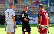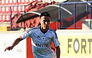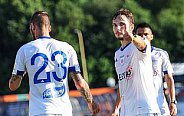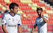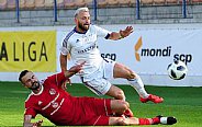Prvú šancu mal v 9. minúte Kostadinov, keď išiel na bránu a zakončil tesne vedľa bližšej žrde. Krátko po tomto momente nasledoval útok hostí s niekoľkými centrami do šestnástky. Na jeden z nich vyskočil Dedič a hlavou otvoril skóre - 0:1. Už v 20. minúte mohol vyrovnať Daniel, lenže z vnútra veľkého vápna vypálil nad brvno. O osem minút neskôr na druhej strane Omasta potiahol útok po pravom krídle a zakončil ho nebezpečnou strelou, ktorú Macík vyrazil na roh. Štyri minúty pred koncom úvodného dejstva videli prítomní diváci pekný futbalový moment, keď to skúsil z ťažkého uhla Daniel a usmernil loptu presne k vzdialenejšej žrdi - 1:1.