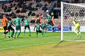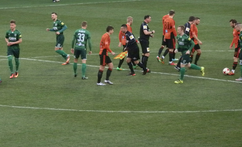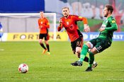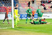 Futbalisti spod Čebraťa netajili po prevažne remízových vystúpeniach nutnosť domáceho víťazstva. O to sa snažili už od začiatku. V 6. minúte našiel Gal Andrezly centrom Lačného a jeho hlavičku smerujúcu k žrdi vyrazil Ferenc. V 10. minúte poslal Daniel center pred bránu, kde sa Gal Andrezly nemýlil a hlavou otvoril skóre – 1:0. Ružomberčania mali aj naďalej prevahu. O sebe však dal vedieť aj Prešov. V 17. minúte to skúsil z väčšej vzdialenosti Katona a o štyri minúty neskôr Dávid Leško. V oboch prípadoch bol Hajdúch na mieste. Potom znova hrozili Liptáci. V 22. minúte Faško našiel prihrávkou Lačného, ktorý tiesnený dokázal vystreliť a Ferenc si pripísal úspešný zákrok. O sedem minút neskôr sa súboj týchto dvoch hráčov zopakoval po prihrávke Gal Andrezlyho a aj teraz z neho vyšiel úspešne gólman hostí, keď vyrazil strelu ružomberského útočníka na roh. Po polhodine hry vystrelil Ďubek spoza veľkého vápna tesne nad brvno. V 37. minúte pohrozil hráč hostí Trebuňák nepríjemnou krížnou strelou z ťažkého uhla, ktorá len tak tak míňala horný roh Hajdúchovej svätyne. V zápätí na druhej strane zneškodnil Ferenc nebezpečnú Lačného hlavičku. Na konci prvého polčasu sa dostal Faško až pred brankára a zvýšil na 2:0.