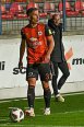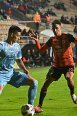 O čestný výkop sa postaral Majster Európy z roku 1976 Antonín Panenka. V 15. minúte mali prvú vážnejšiu šancu hostia, keď Hentyho strelu v poslednej chvíli obetavo zblokoval Madleňák. O dvadsaťdva minút neskôr sa Green predieral cez domácu šestnástku, jeho prvú strelu zblokoval Fabiš a druhým pokusom neprekvapil pripraveného Krajčírika. Už po minúte na opačnej strane Regáli našiel vo veľkom vápne Gereca a ten vystrelil nad brvno. V závere polčasu Madleňák prihral v šestnástke Rymarenkovi, ktorý vo veľkej šanci vypálil tesne nad.