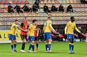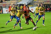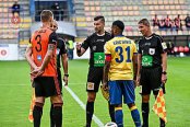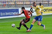 Prvú šancu mali už v 2. minúte hostia, keď Lamkel Zé našiel centrom Andzouanu, ktorého hlavičku smerujúcu na lepšie postaveného spoluhráča odvrátil Maslo na žrď vlastnej brány. Po piatich minútach musel na opačnej strane ihriska zasahovať Jedlička pri strele Takáča, ktorú vyrazil na rohový kop. V 13. minúte získala Dunajská Streda roh a po ňom dokopol loptu popri žrdi do brány Andzouana – 0:1. Po troch minútach Takáč hľadal centrom z priameho kopu Mojžiša a jeho lopta napokon zapadla tesne vedľa vzdialenejšej žrde. V 31. minúte sa Regáli ocitol zoči-voči Jedličkovi, lenže namieril priamo do brankára. O sedem minút neskôr Lamkel Zé v šanci namieril nad brvno. V závere úvodného dejstva vystrelil tesne nad aj na opačnej strane Takáč a Regáliho strelu po Madleňákovej prihrávke vyrazil Jedlička.