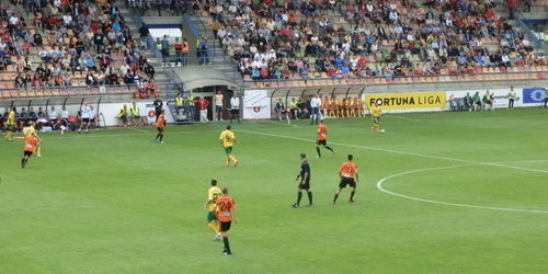 Počas prvého polčasu mali bližšie ku gólu hostia. Prvá šanca prišla v šiestej minúte, kedy po rohovom kope vyskúšal Káčer strelu spoza šetnástky, lenže prestrelil bránu. O desať minút neskôr zahrával Hučko priamy kop a namieril pod brvno. Lešňovský bol pozorný a chytil jeho strelu. V 27. minúte sa znova musel predviesť domáci gólman, keď vyrážal Lupčovu strelu a o tri minúty neskôr vychytal aj nebezpečnú Jeličovu hlavičku. Domáci hráči sa snažili o protiútoky, lenže tie sa zvyčajne končili nepresnou finálnou prihrávkou. Ružomberčania boli najbližšie ku gólu na konci polčasu, kedy Zreľák našiel Almaského a ten nahral Bartošovi, no jeho strelu z vnútra šestnástky zneškodnil Krnáč.