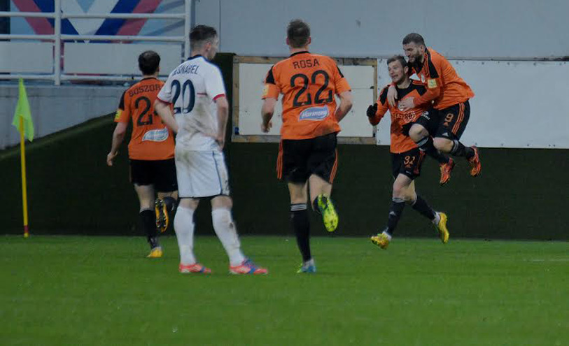 Už v 10. minúte sa predieral Miloš Lačný pokutovým územím Zlatých Moraviec a De Souza ho zastavil nedovolene, za čo videl žltú kartu a nasledoval pokutový kop, ktorý premenil Tomáš Ďubek – 0:1. Po góle sa ViOn okamžite snažil o vyrovnanie, čo sa mu podarilo v 28. minúte, kedy Fabián Slančík vyrovnal na 1:1. Rovnovážny stav však platil len jedenásť minút, pretože potom presne namieril z uhla Miloš Lačný a vrátil Ružu do vedenia – 1:2.