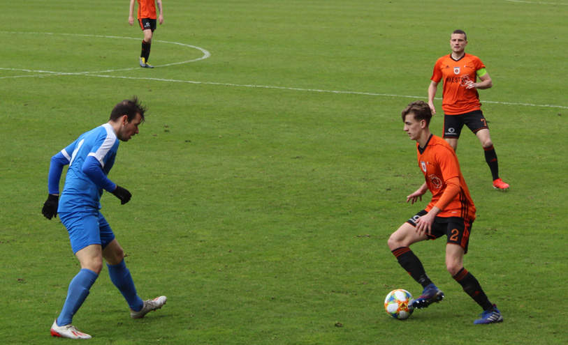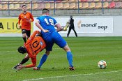 Prvú šancu si vypracovali Liptáci, keď v 4. minúte Múdry namieril tesne vedľa brány. Postupom času začali čoraz viac hroziť favorizovaní hostia, ktorým patrí v druholigovej tabuľke prvá pozícia. V 6. minúte Kohár na dvakrát zneškodnil nebezpečnú Dolného strieľanú prihrávku. O osem minút neskôr Polievka vystrelil nad brvno a krátko na to Vujošević hlavou rozvlnil bočnú sieť. V 35. minúte Kohár chytil Vujoševićovu strelu a po dvoch minútach si domáci gólman poradil aj s Dolného pokusom.