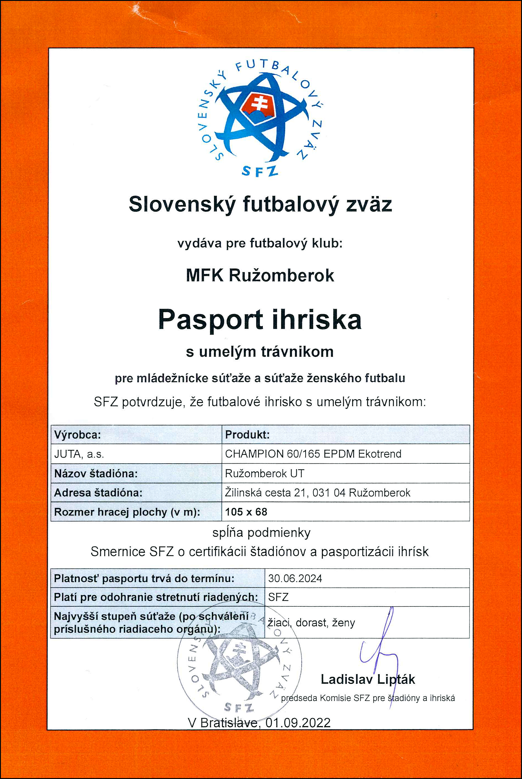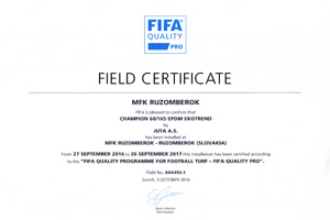 "Náš umelý trávnik získal certifikát FIFA Quality Pro", zo dňa 28.10.2016) a položený nový typ umelého trávnika